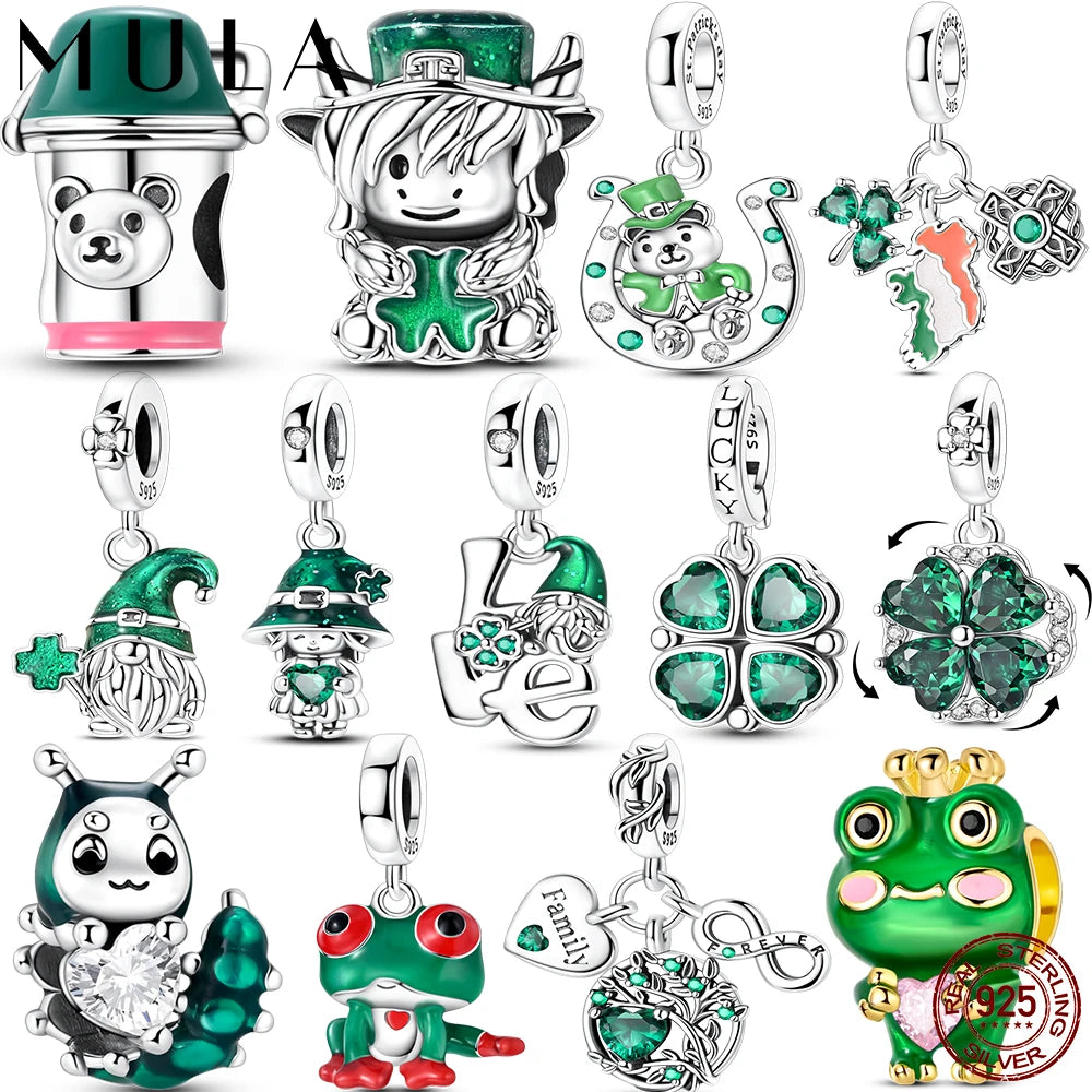 Breloque Trèfle Vert Porte-Bonheur - Argent Sterling 925 - Compatible Bracelet MULA